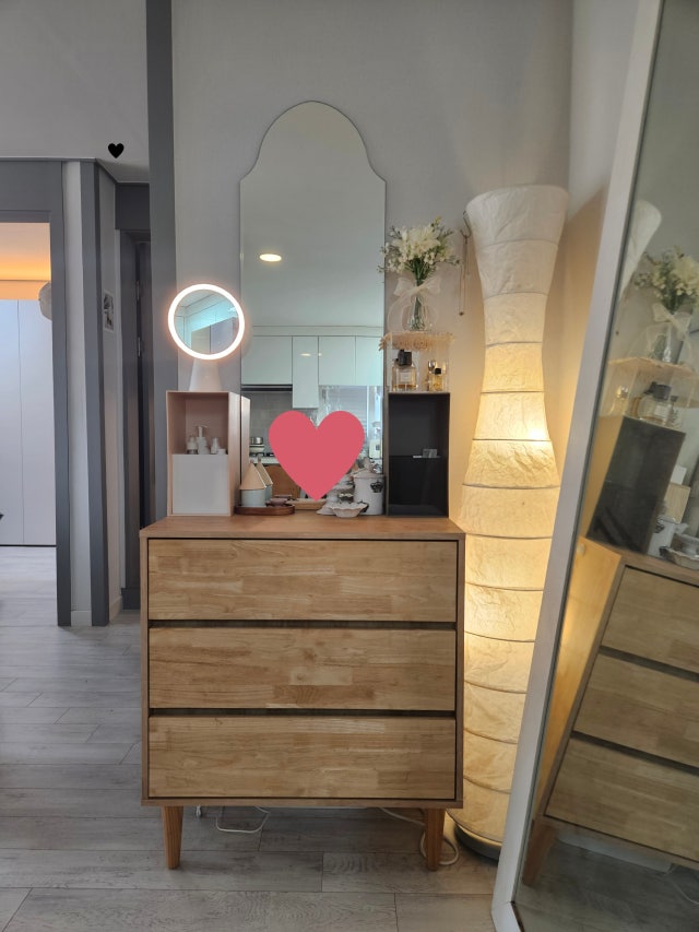 기존에 사용하던 400x600사이즈 거울을 깨뜨린 뒤, 가로 400에 세로 1000이상인 슬림한 거울을 찾고 있었습니다. 화장대에서 일어서도 얼굴이 시원하게 보이는 길이를 원했지만, 이 비율의 제품이 생각보다 많지 않았고, 과하지 않은 프렌치무드로 찾다보니 선택지가 줄었습니다. 약 두달 정도 찾다가 해당 제품을 드디어 찾았네요. ![]() |